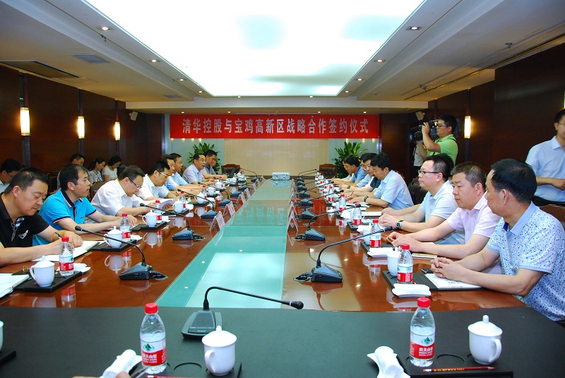 2015年7月16日,清華控股總裁周立業(yè)、高級副總裁黃俞、紫光制藥董事長張軼、總裁蔣朝文、華控創(chuàng)新總經(jīng)理曹捷、健康管理投資公司首席投資官李想、紫光辰濟總經(jīng)理王睿成等受邀到寶雞市進行回訪。