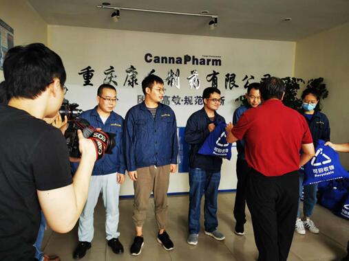 區(qū)人大常委會主任張明生為重慶康樂制藥有限公司員工發(fā)放慰問品